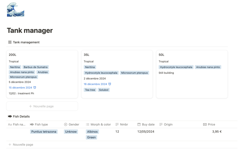 English template. Modern blue theme. Highly customizable. Unlimited access. The tank manager template includes a tank information sorter, detailed fish information, a calendar, and a resource sorter (treatments, wish list, etc.). Get started today and experience a new level of productivity.